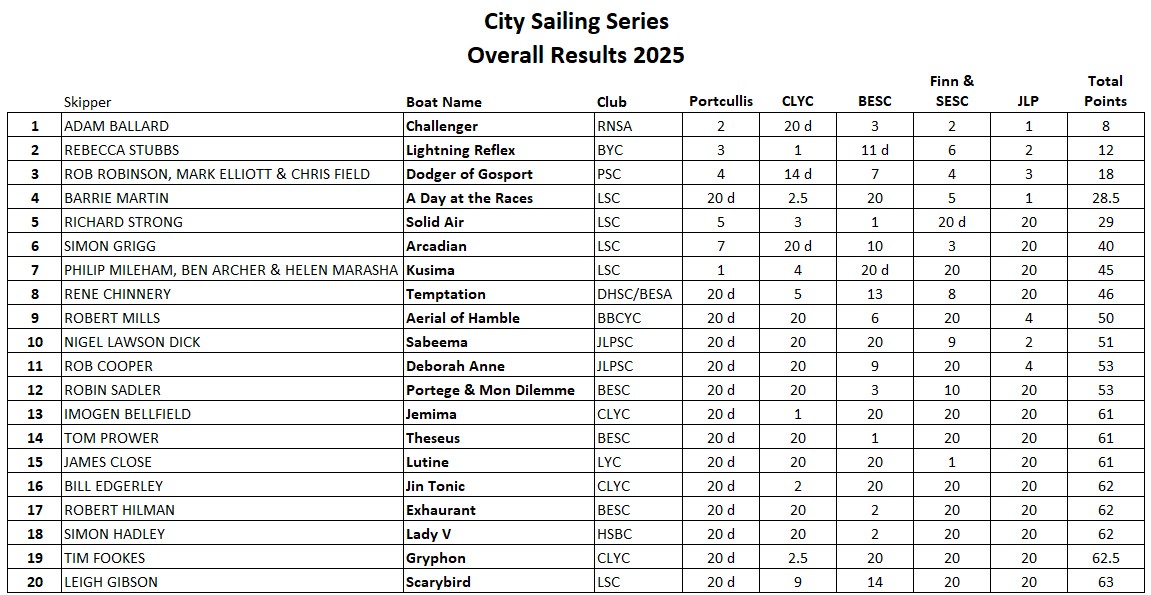 All skippers and crew from yachts that participated in any of the City Sailing Series Regattas in 2025 or intend to in 2026 are invited.